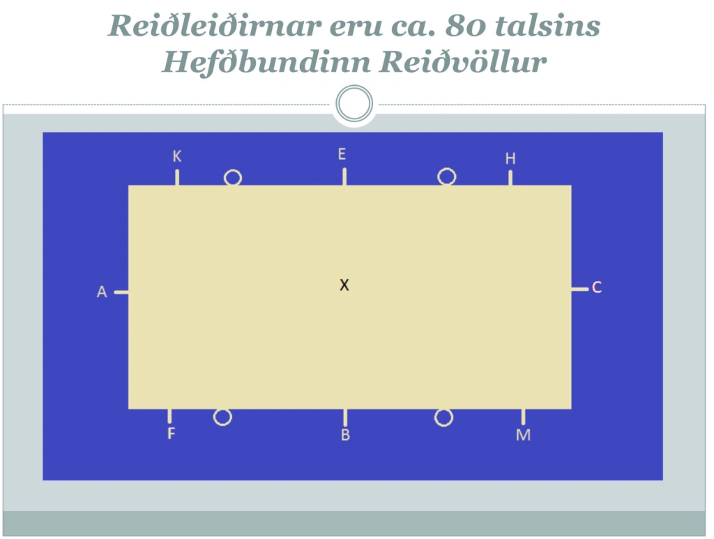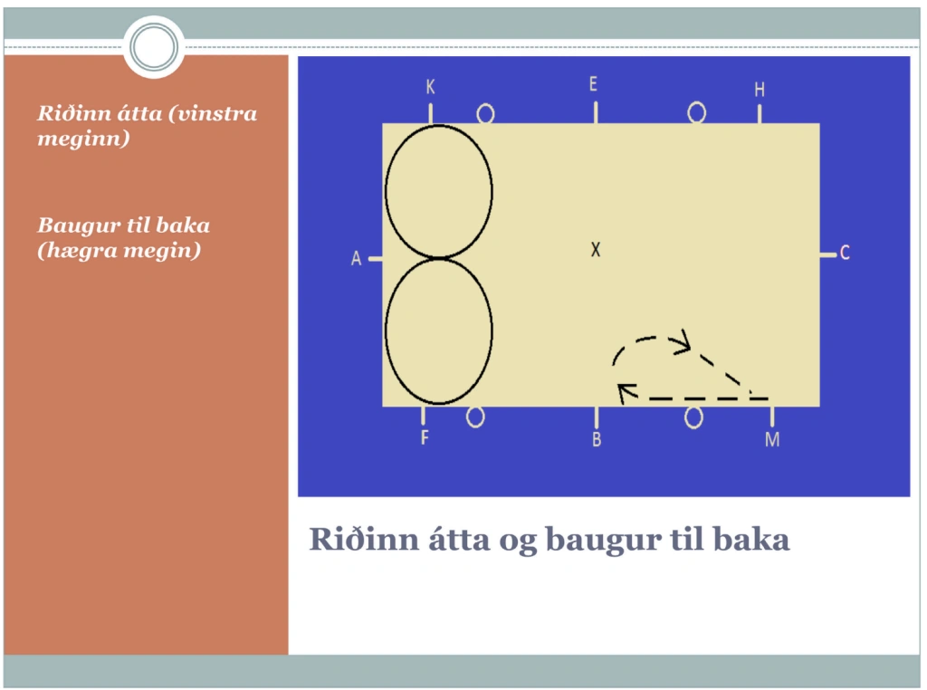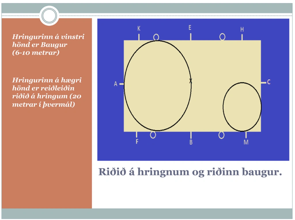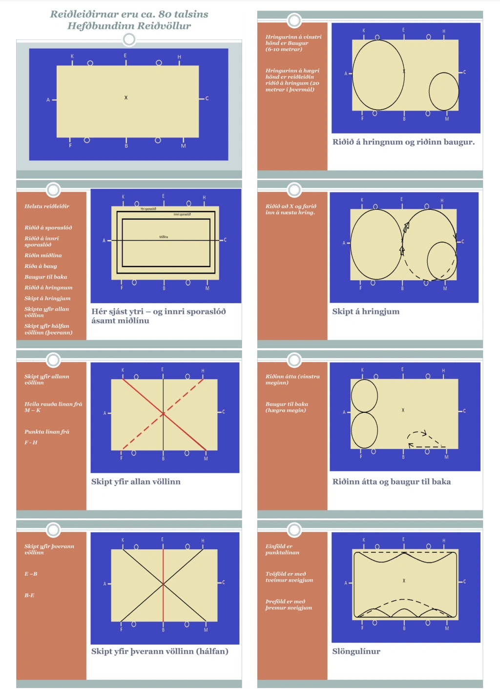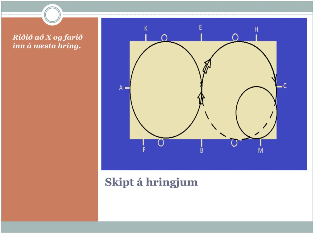 Fylgja ber hefðbundnum reiðleiðum á vellinum og forðast skal að ríða þvert fyrir aðra knapa.