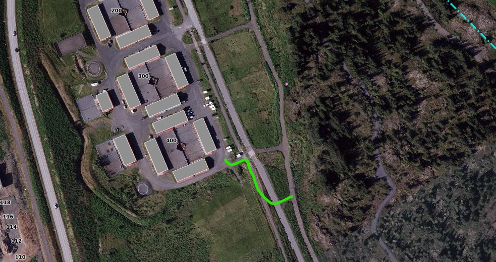 Við eigum víst að fara göngustíginn og niður á reiðveg eins og myndin sýnir.