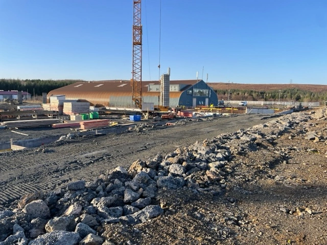 Mikil umsvif og gríðaleg umferð stórra ökutækja er í og við byggingasvæði reiðhallarinnar.