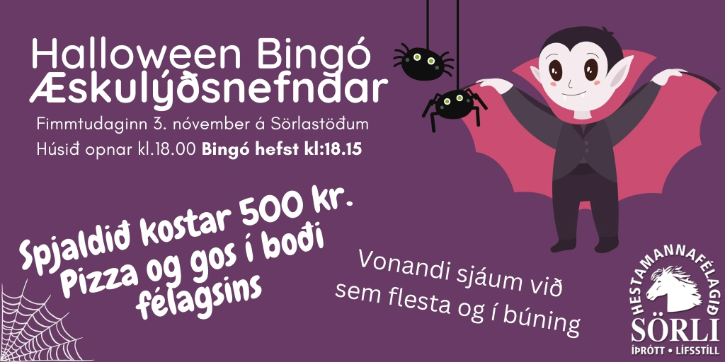 Við hvetjum alla til að mæta í búning og taka þátt í Halloween gleðinni með okkur, eftir bingóið verða pizzur og drykkir í boði félagsins.