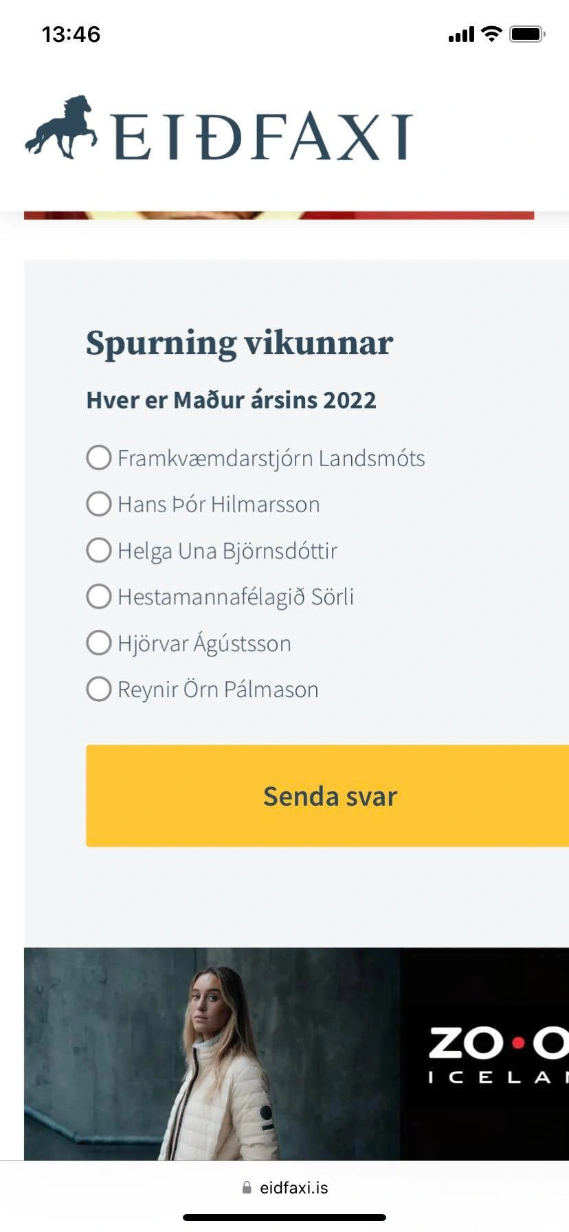 Þeir sem vilja taka þátt í kosningunni fara inn á eidfaxi.is og finna Spurningu vikunnar og kjósa þar, sjá sýnishorn hér að neðan, ekki hægt að kjósa hér.