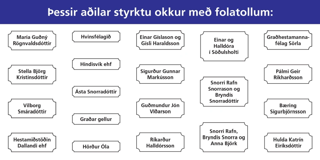 Þessir frábæru aðilar styrktu okkur með því að gefa okkur vinningana í happdrættið okkar. Endilega takið þátt og styrkið félagið með því að kaupa miða. Fullt af glæsilegum vinningum sem ættu að höfða til flestra. Líka þeirra sem stunda ekki hestamennsku.