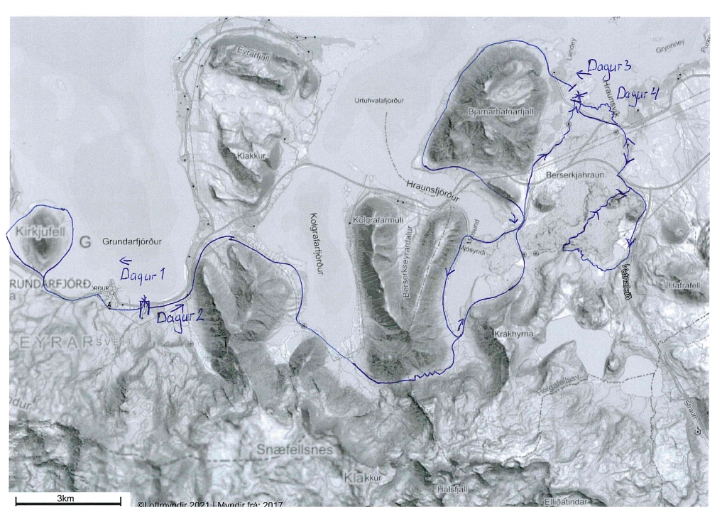 Fyrsti dagur – Umhverfis Kirkjufell, um 12 km.