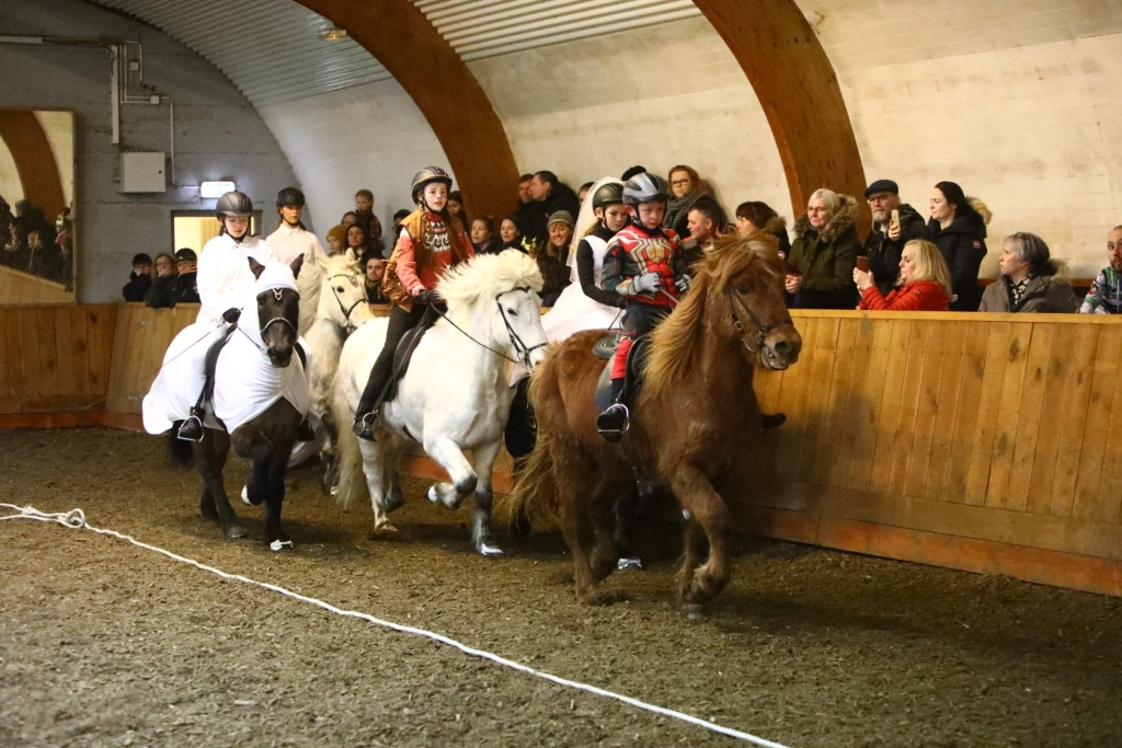 Síðastliðinn sunnudag voru haldnir Grímuleikar Sörla. Þar mættu tæplega 50 glaðbeittir knapar í allskyns búningum og skemmtu sér saman, þrátt fyrir mjög stuttan fyrirvara og sýnir það okkur vel hve gróskan og áhuginn er mikil í félaginu og framtíðin er spennandi hér hjá okkur í Sörla