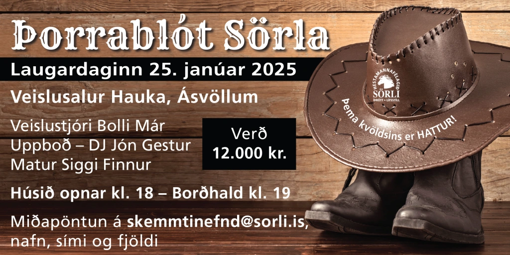 Miðapöntun sendist á skemmtinefnd@sorli.is, þar komi fram nafn, sími og fjöldi.