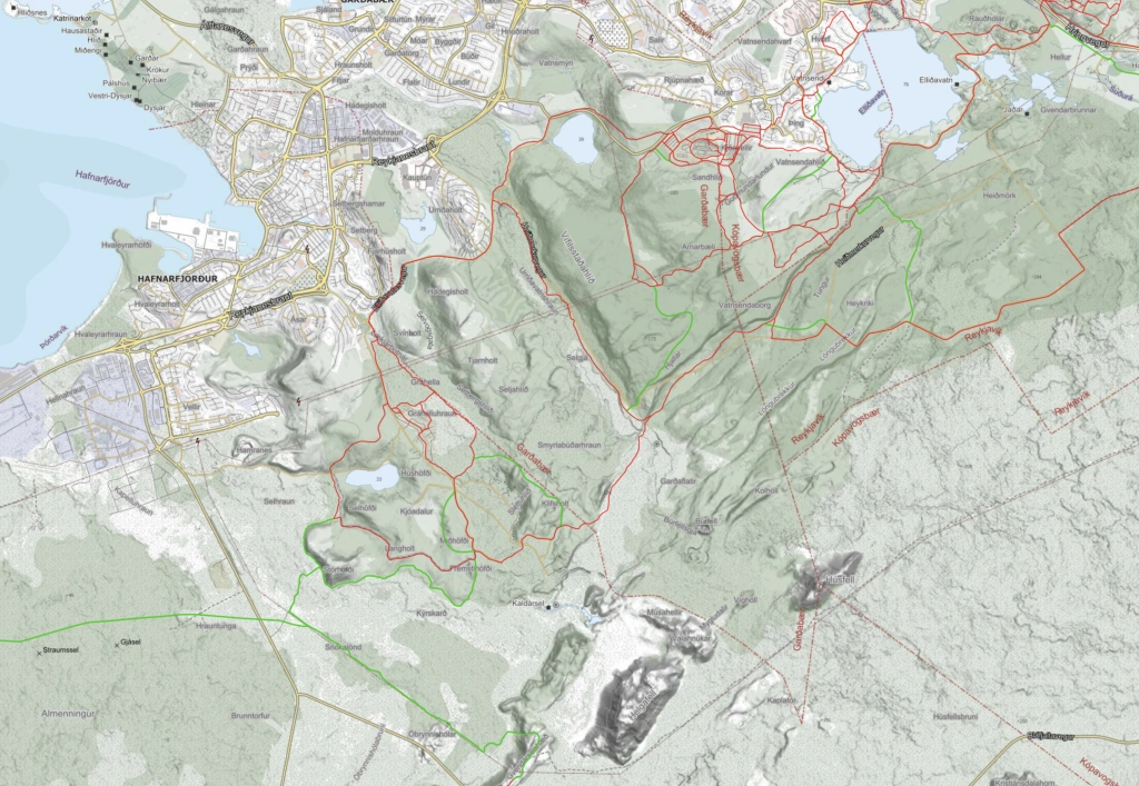 Reiðleið um Smyrlabúðahraun sem tengir Sörlasvæðið við reiðleiðir í Heiðmörk.