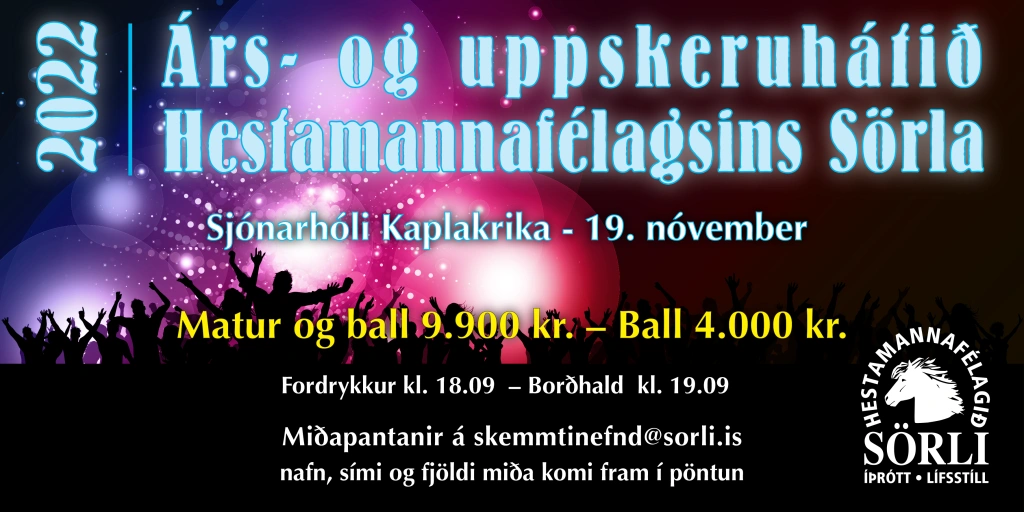 Ath. takmarkaður miðafjöldi í boði - svo fyrstur kemur fyrstur fær! Hægt er að tryggja sér miða með því að senda tölvupóst á skemmtinefnd@sorli.is með nafni, símanúmeri og fjölda miða. Afhending miða verður svo auglýst síðar.
