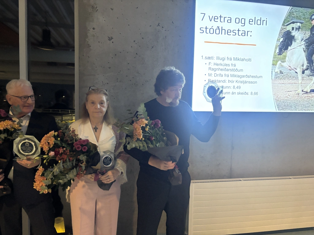 Hér að neðan má sjá myndir af verðlaunaafhendingu fyrir kynbótahross hryssur og hestar í 1.-3. sæti.