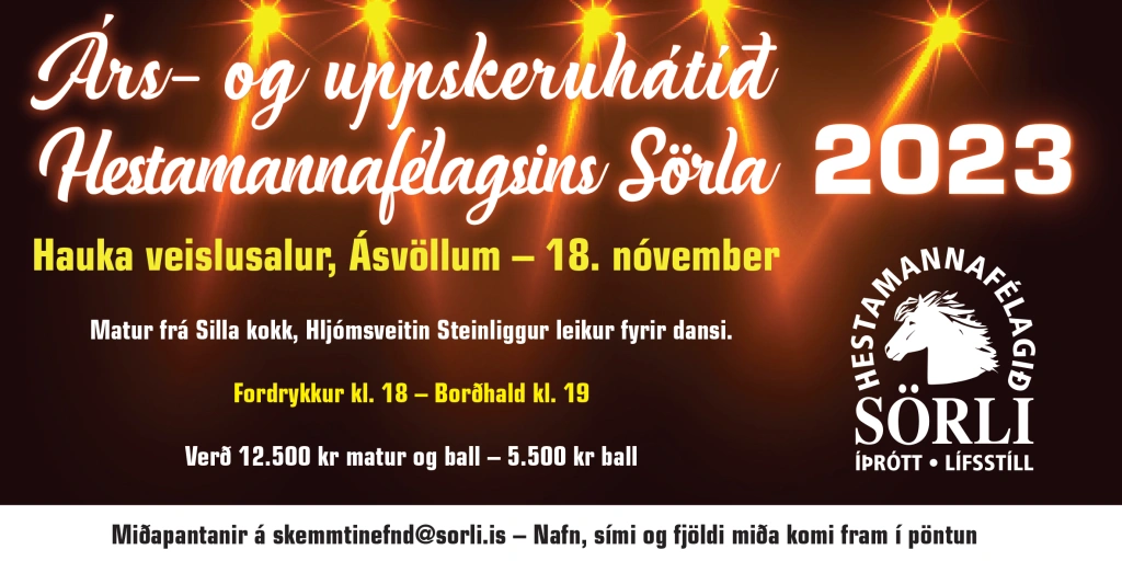 Ath. takmarkaður miðafjöldi í boði - svo fyrstur kemur fyrstur fær! Hægt er að tryggja sér miða með því að senda tölvupóst á skemmtinefnd@sorli.is með nafni, símanúmeri og fjölda miða. Afhending miða verður svo auglýst síðar.