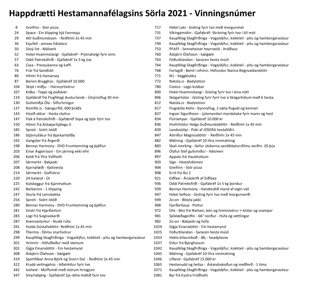 Vinningsnúmer Skírdagshappdrætti Sörla
