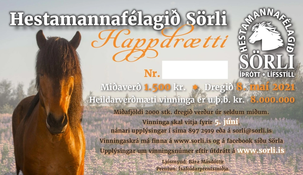 Nú fer hver að verða síðastur að tryggja sér miða í Skírdagshappdrætti Hestamannafélagsins Sörla.