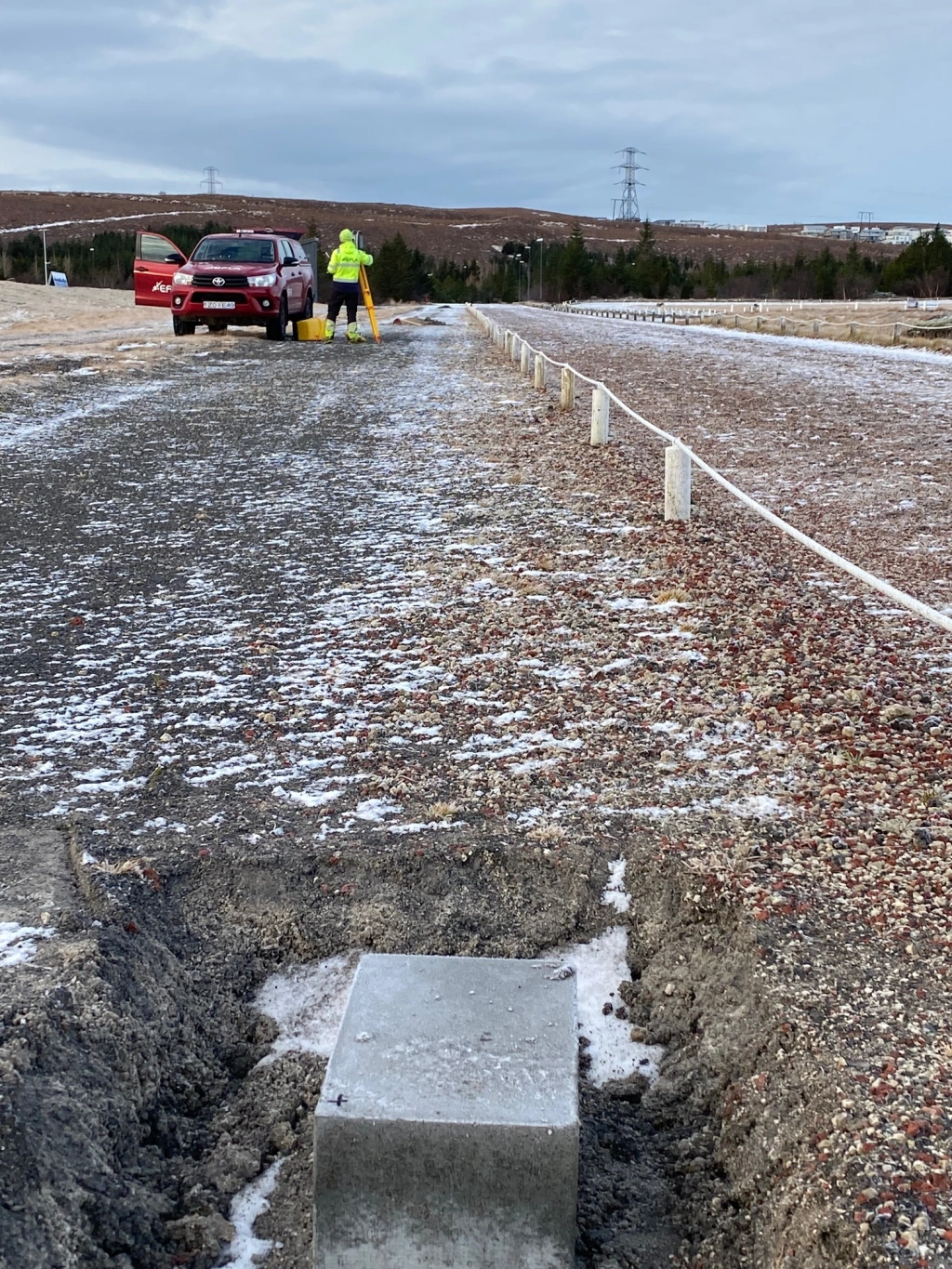 Nýverið fengum við mælingamann frá Eflu verkfræðistofu til að mæla skeiðbrautina okkar og setja niður fasta punkta. Grafnir voru niður steyptir steinar í 0 punkti, 100 m, 150 m, 200 m og 250 m og settir niður fastir punktar í steinana. Brautin okkar er orðin svo góð að það er eins gott að hafa þessa hluti í lagi þegar stóru og eftirsóttu metin fara falla.