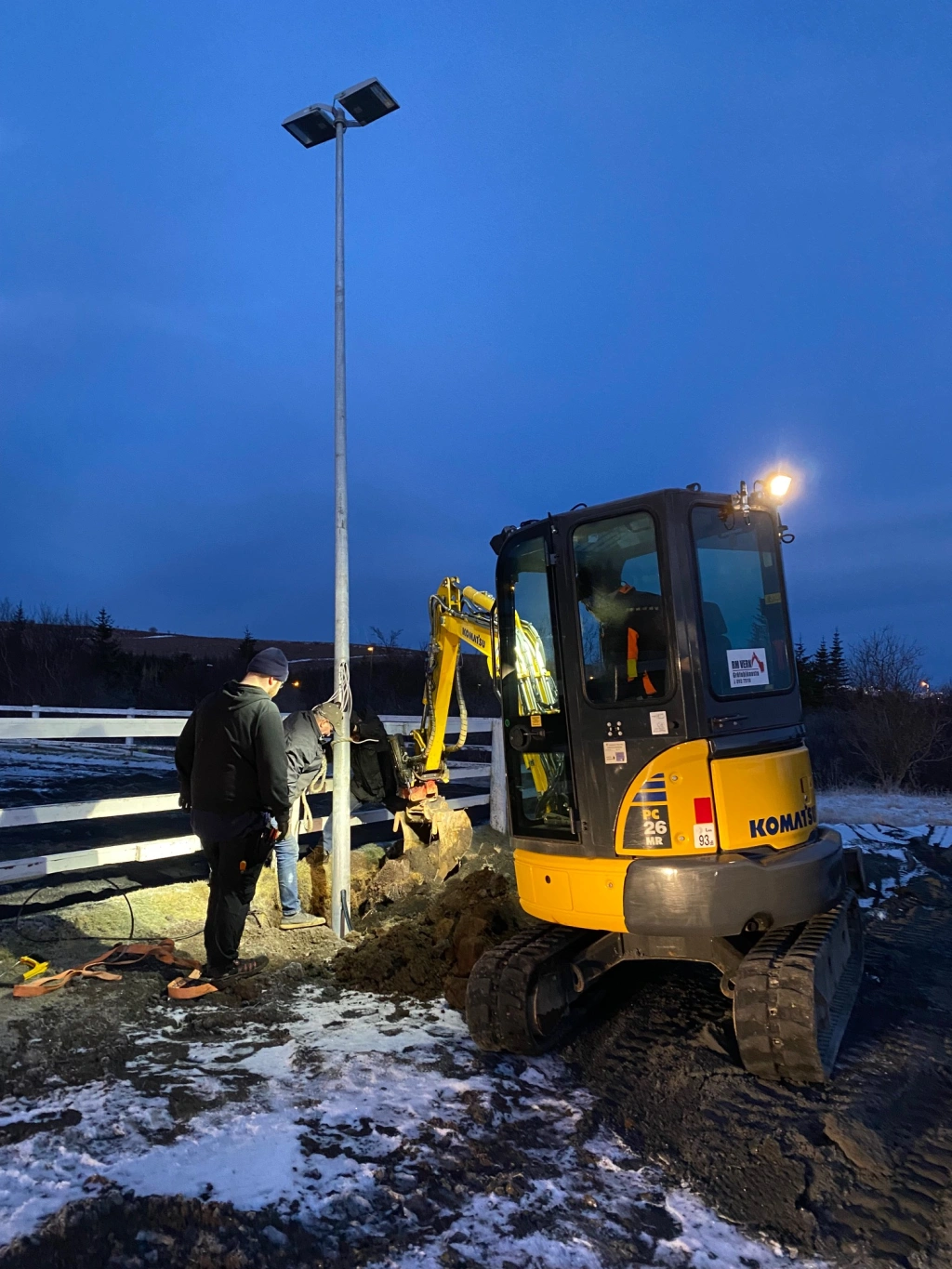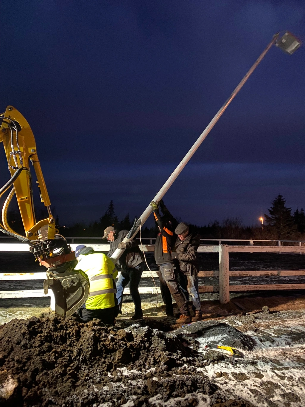 Ákveðið var að bæta lýsingu við hvíta gerðið og hringgerðið við Sörlastaði til þess að nýtingin á þeim geti orðið betri yfir vetrartíman. Einnig var bætt við efni í bæði gerðin. Það er löngu ljóst að reiðhöllin okkar er allt orðin allt of lítil og að okkur vantar fleiri kennslustofur. Við höfum þurft að færa kennslu út í gerði, sem er allt í lagi ef veður er skaplegt, en þá er betra að hafa lýsinguna í lagi. Einnig höfum við fengið afnot af minni reiðhöllum hér á svæðinu fyrir Pollanámskeið og Reiðmennskuæfingar. Við höfum fengið að skjóta hópum inn í höllina í hesthúsinu hans Helga í Góu, höllina hjá Íshestum og Atla Guðmunds og höllina hjá Önnu Björk og Snorra og erum við afar þakklát fyrir það. Við erum svo sannarlega að reyna að hafa námskeið fyrir alla og þá skarast tímarnir í okkar alltof litla húsnæði. Það er því samstaða okkar frábæru félagsmanna að lána okkur aðstöður sínar sem gerir okkur kleift að halda þessu frábæra starfi gangandi.