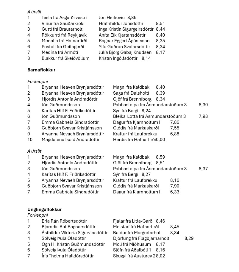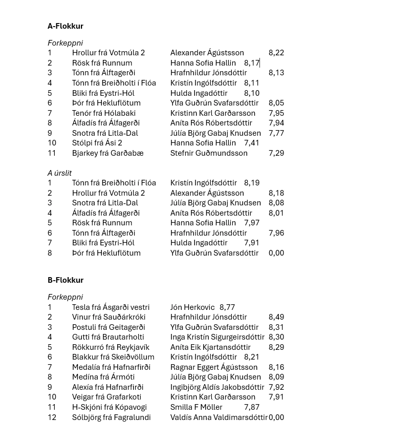Áhorfendur nutu þess að sjá fagmannlega reiðmennsku, frábæran keppnisanda og lifandi stemningu á svæðinu, þar sem fjölmennt var í brekkunum og andrúmsloftið sannkölluð gæðingaveisla.