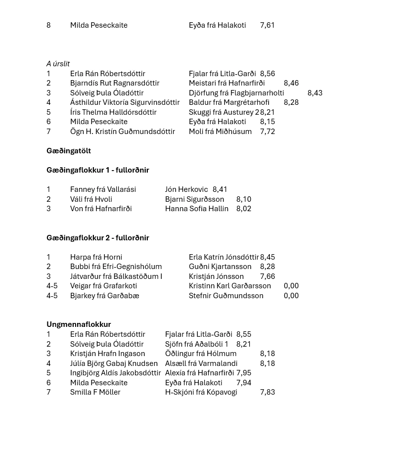 Hér fyrir neðan má sjá niðurstöður og úrslit frá Gæðingaveislu Sörla