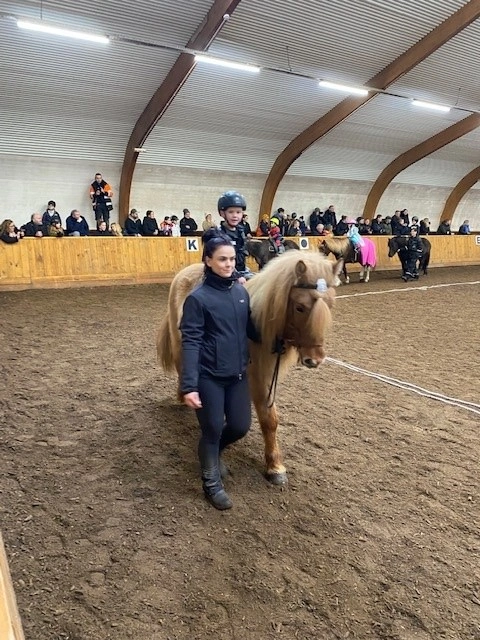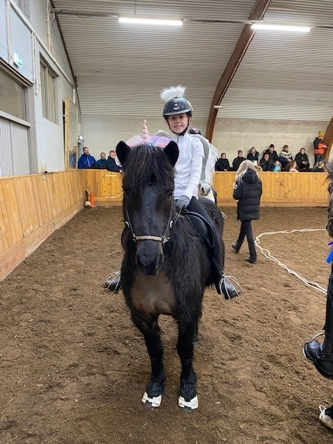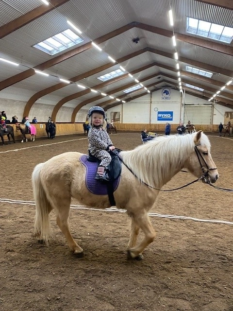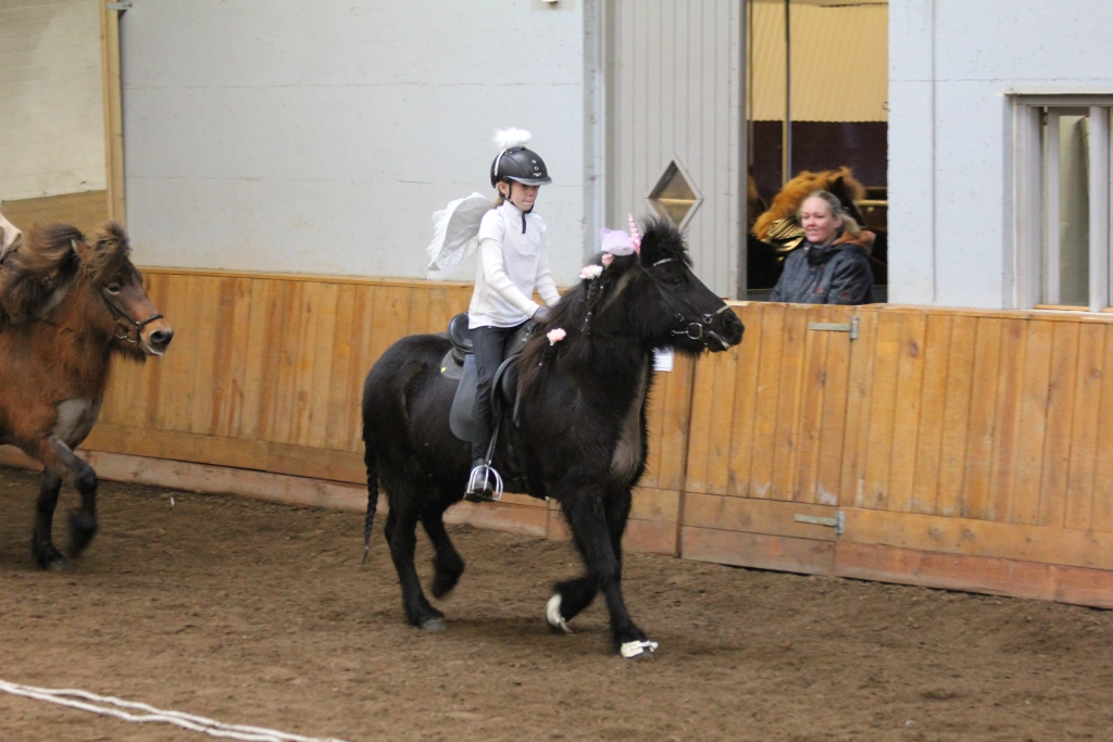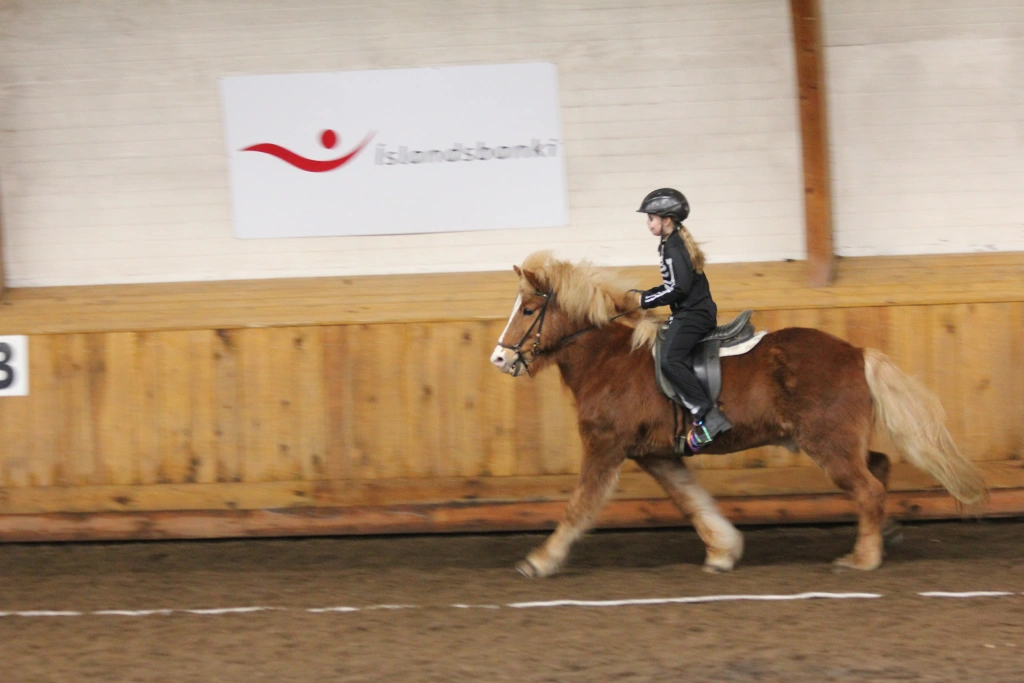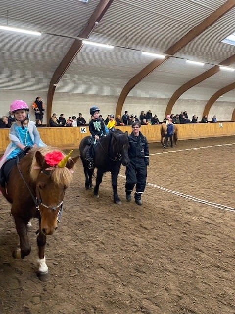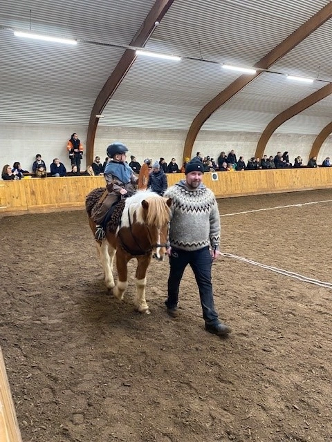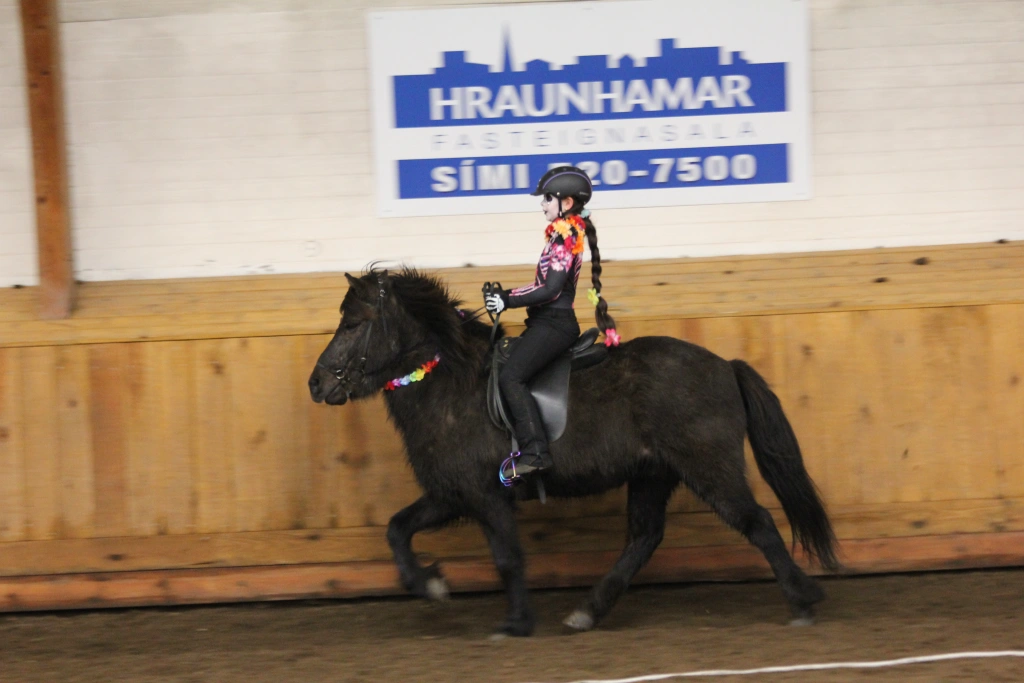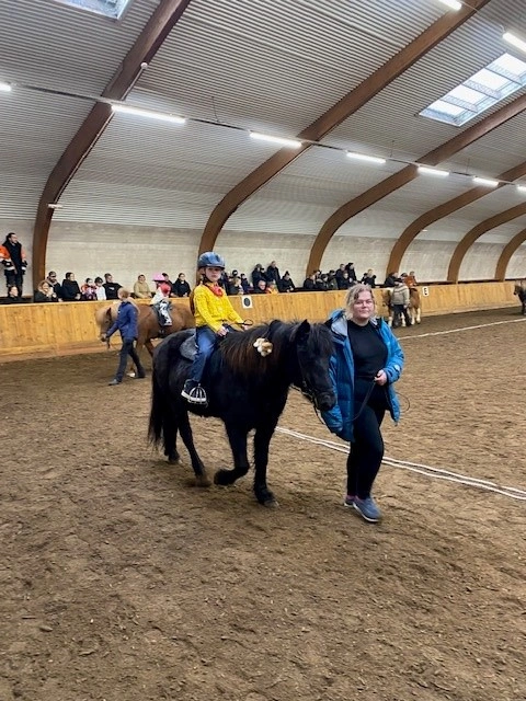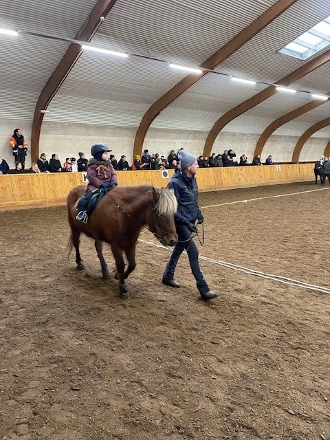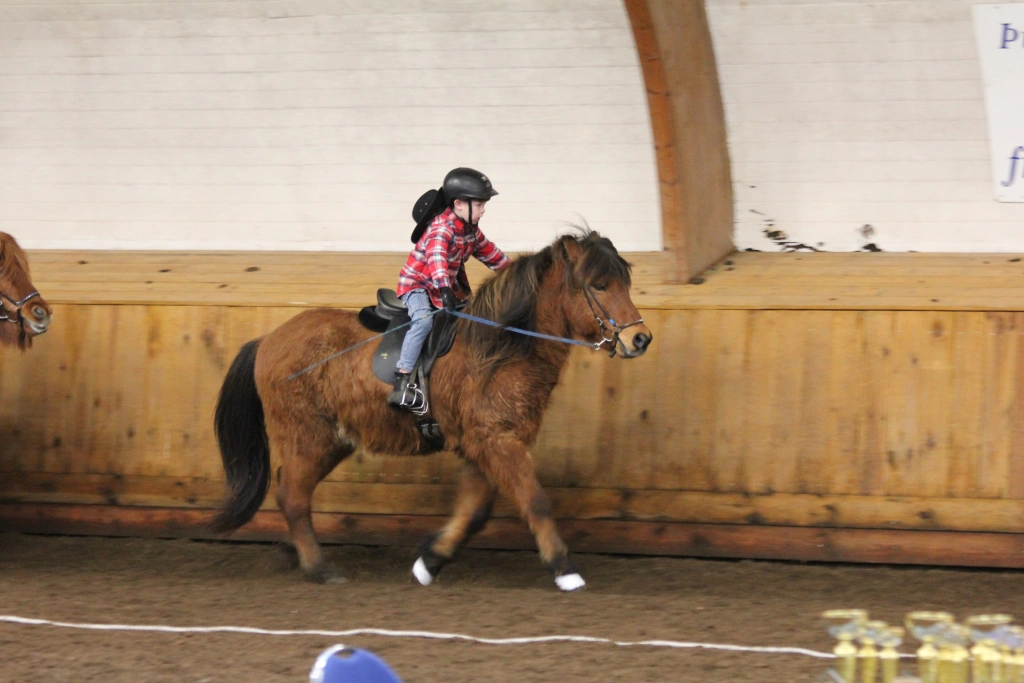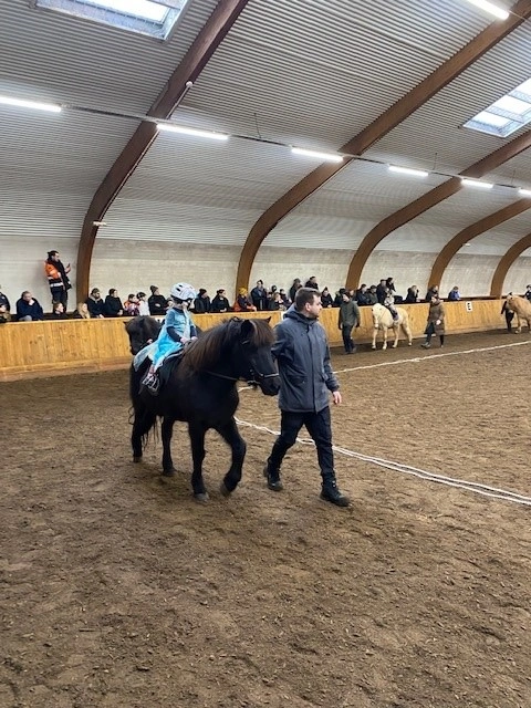 Hún Margrét Rós Jónsdóttir á Víkingi frá Ási var yngsti knapi leikanna aðeins 6 mánaða gömul. En það voru 14 teymdir pollar og 7 pollar sem riðu hring eftir hring á tölti eða brokki hvert öðru flottara.