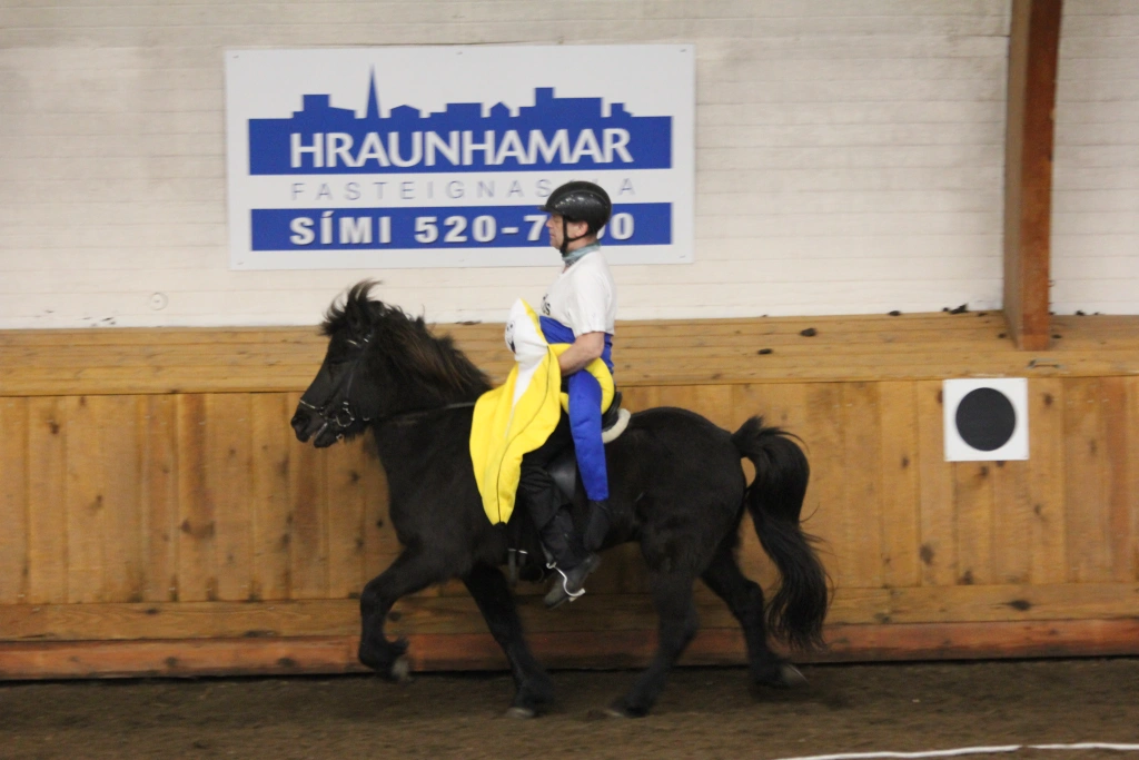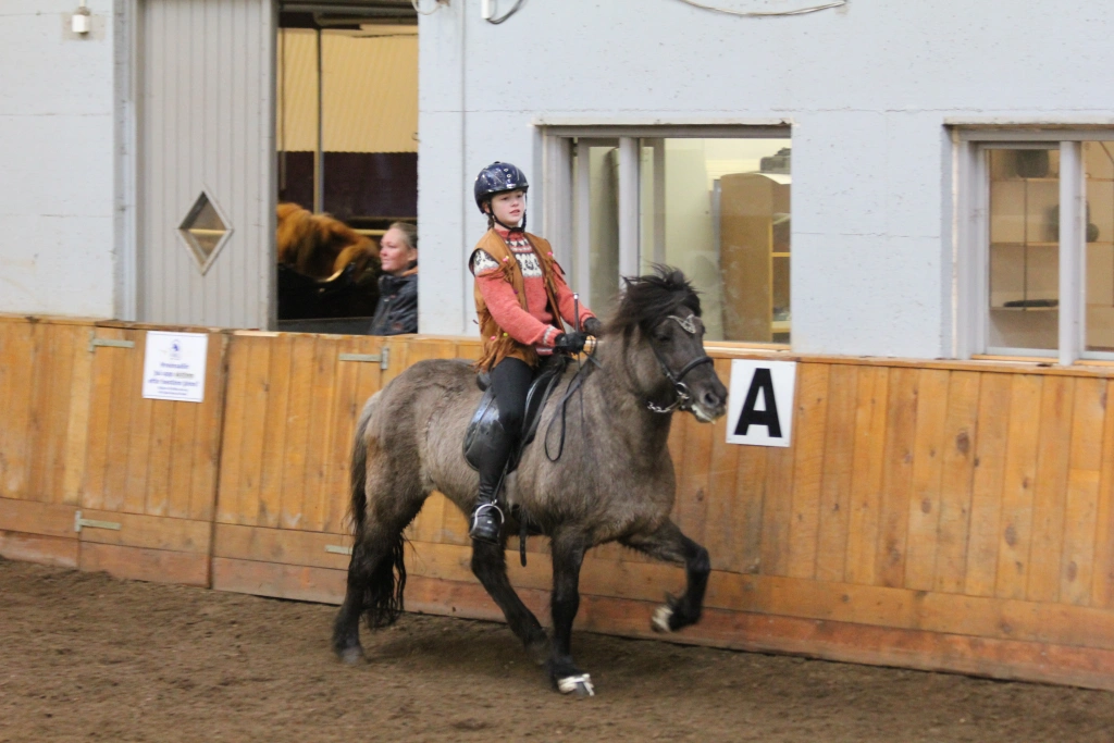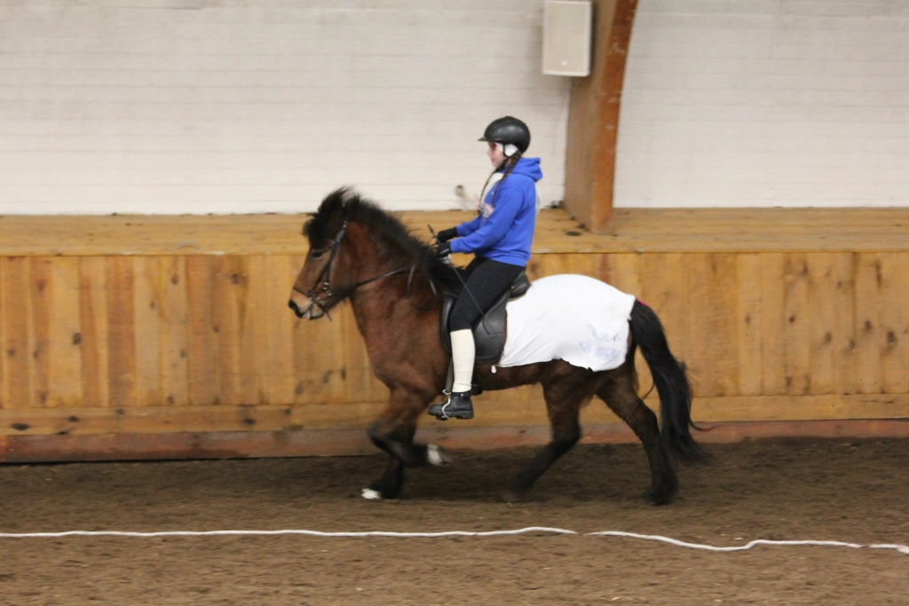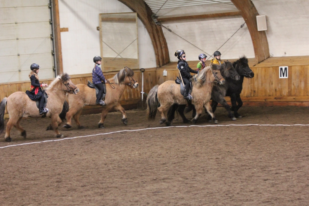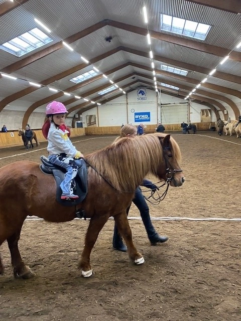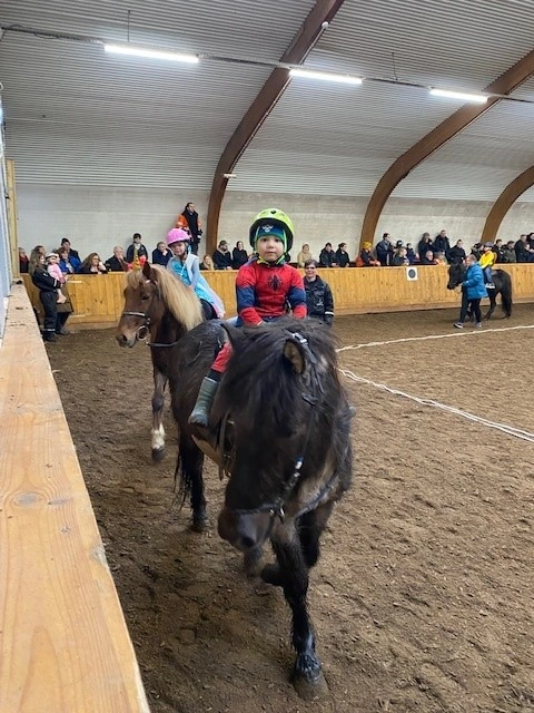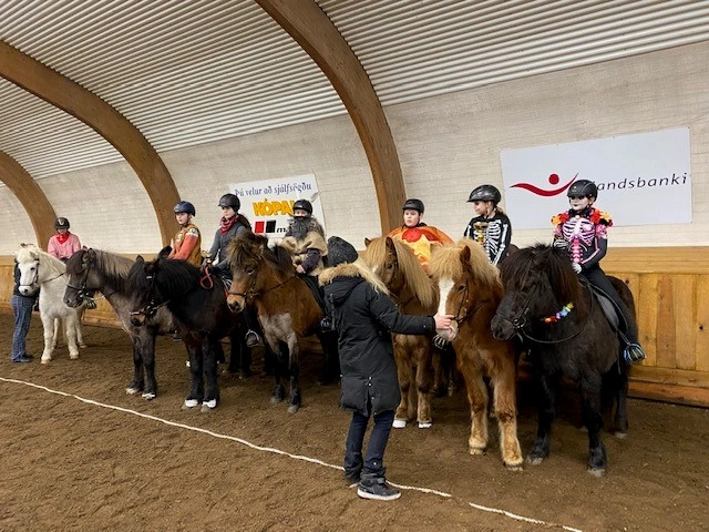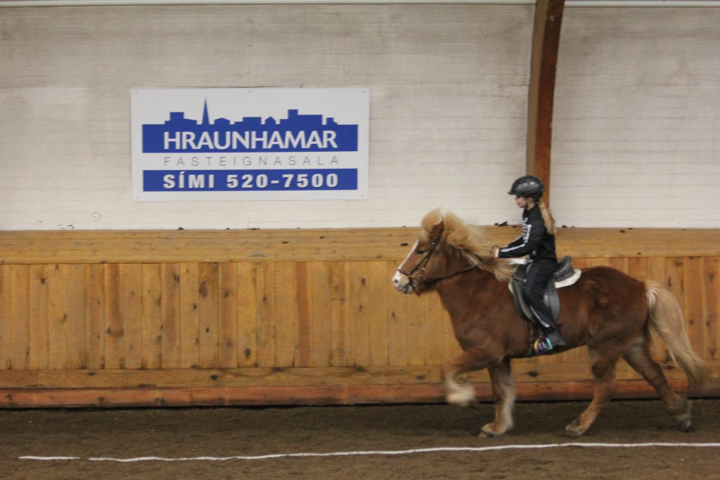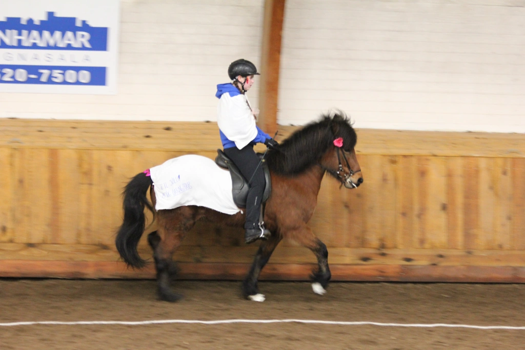 Hún Margrét Rós Jónsdóttir á Víkingi frá Ási var yngsti knapi leikanna aðeins 6 mánaða gömul. En það voru 14 teymdir pollar og 7 pollar sem riðu hring eftir hring á tölti eða brokki hvert öðru flottara.