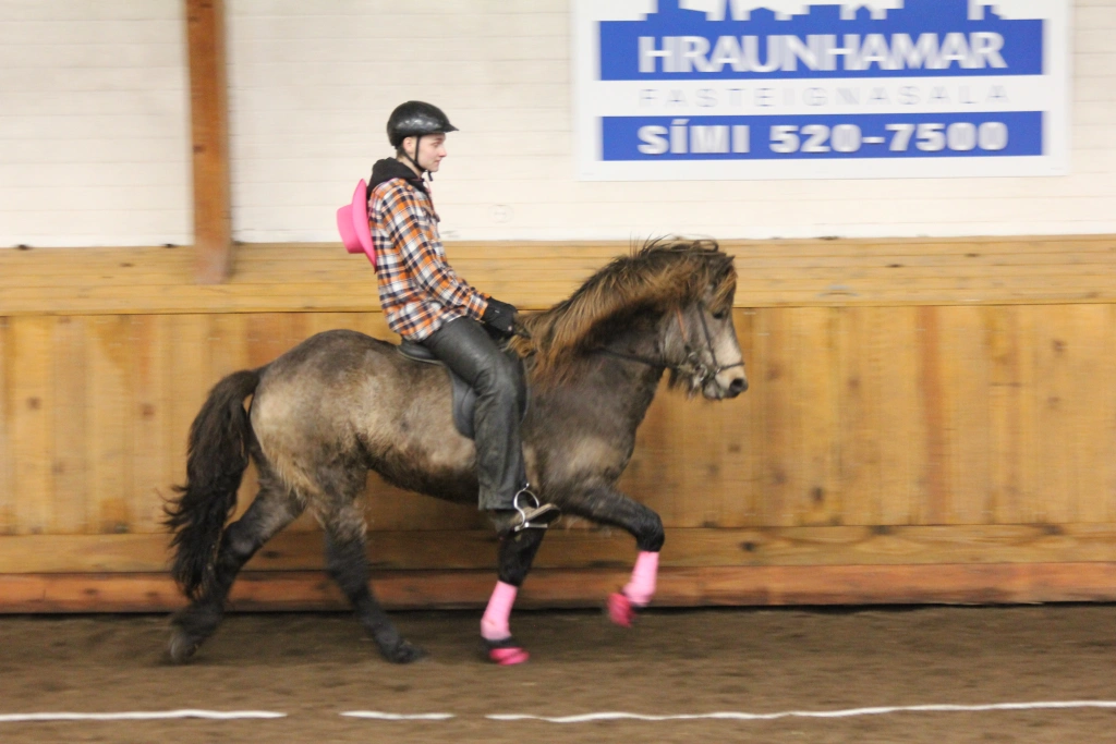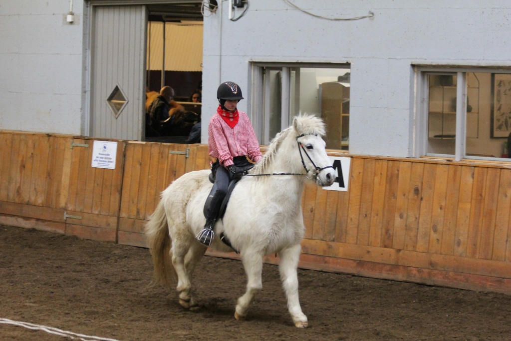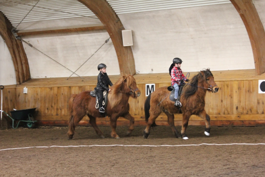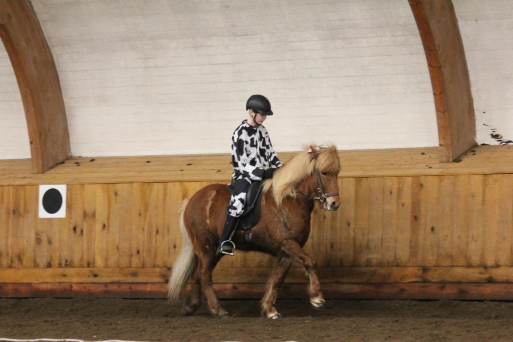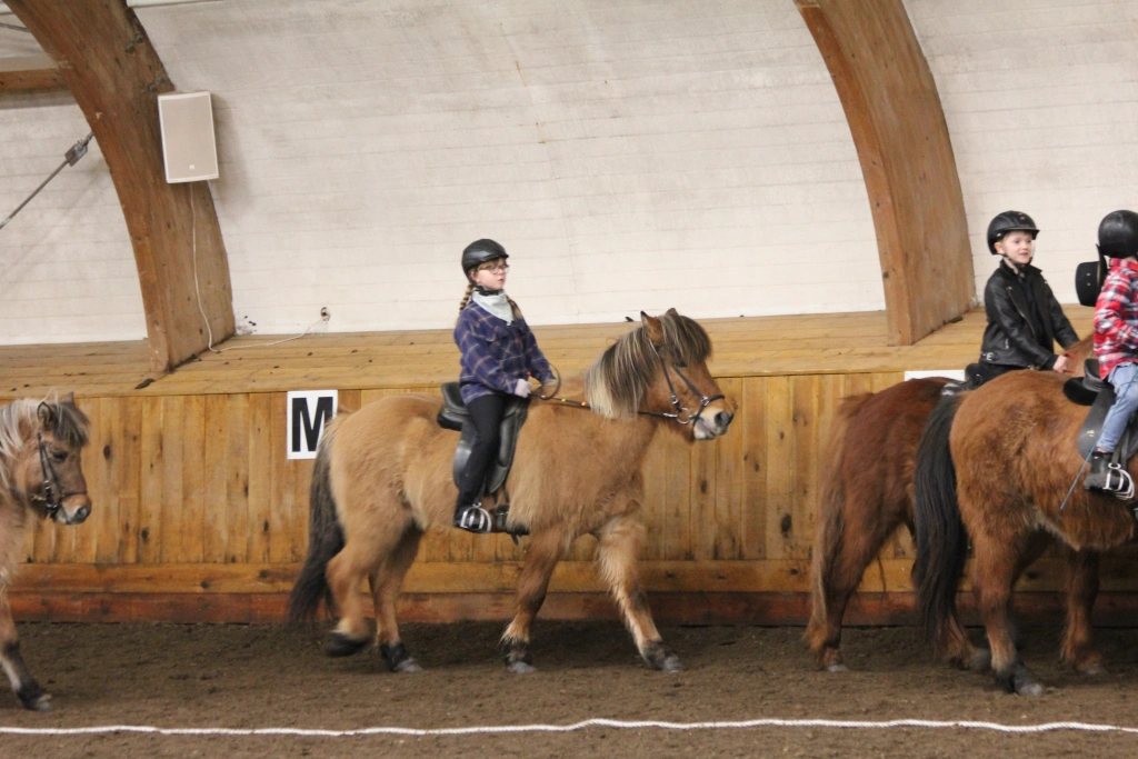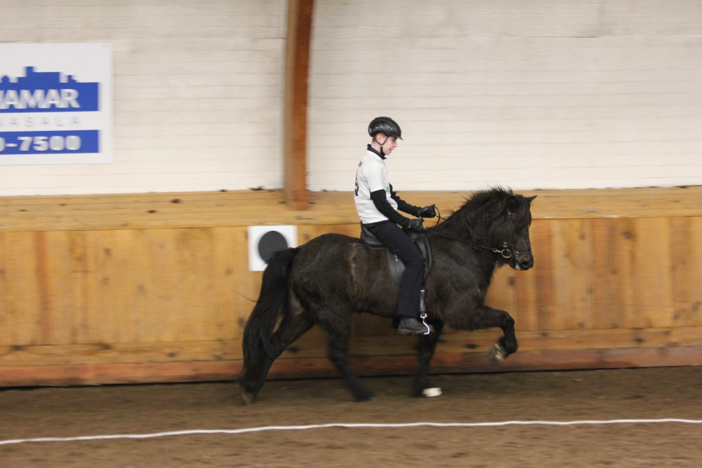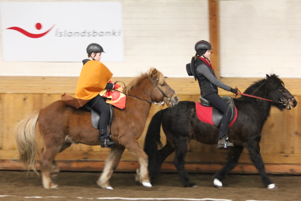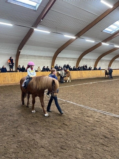 Hún Margrét Rós Jónsdóttir á Víkingi frá Ási var yngsti knapi leikanna aðeins 6 mánaða gömul. En það voru 14 teymdir pollar og 7 pollar sem riðu hring eftir hring á tölti eða brokki hvert öðru flottara.