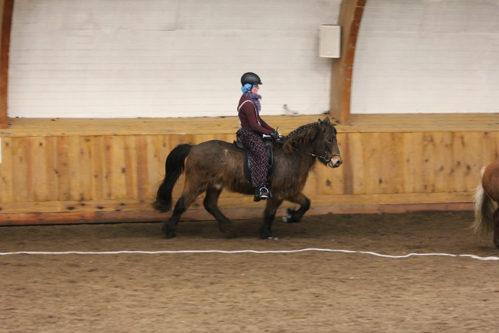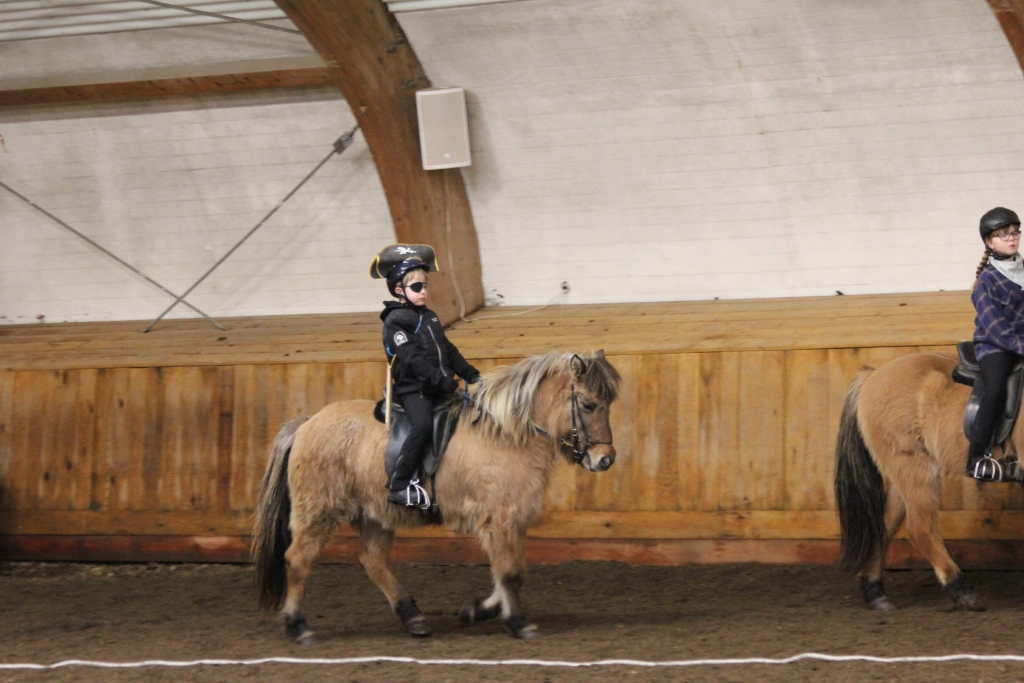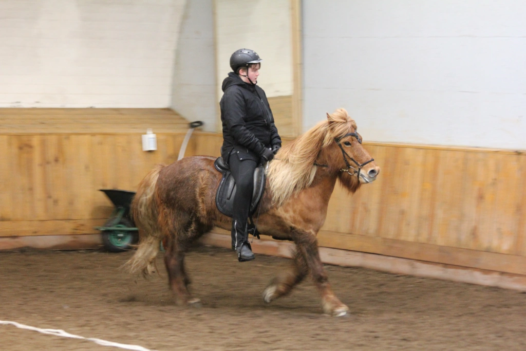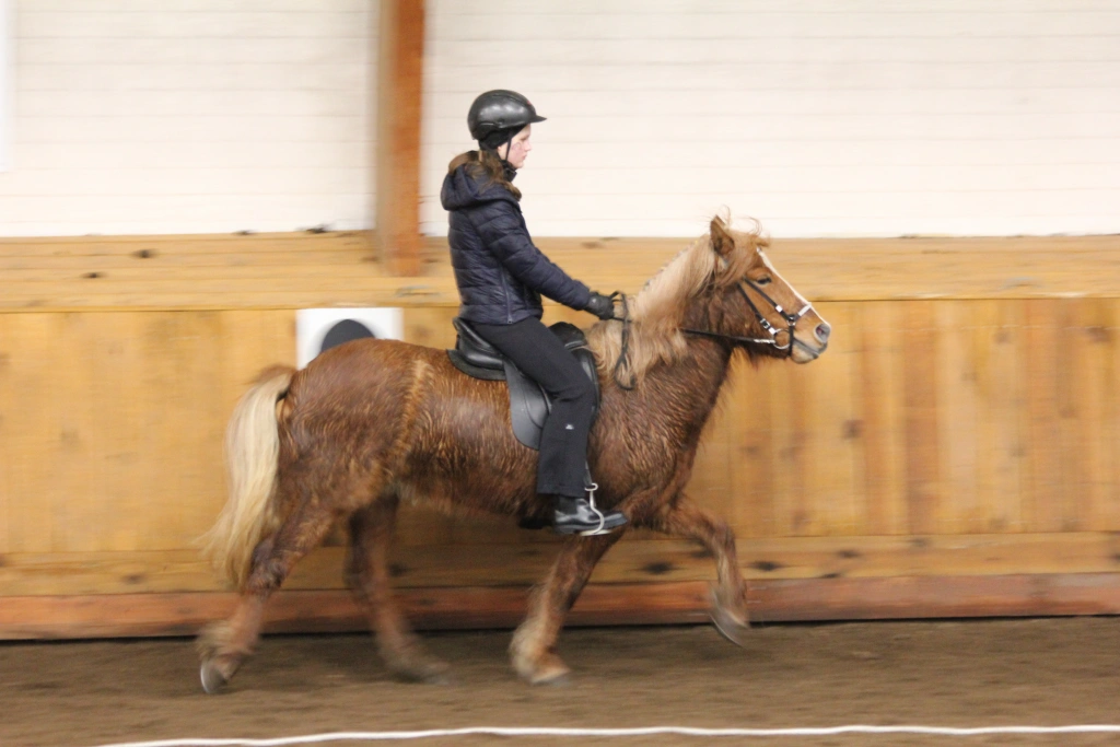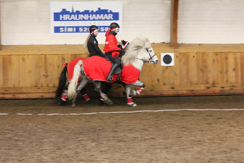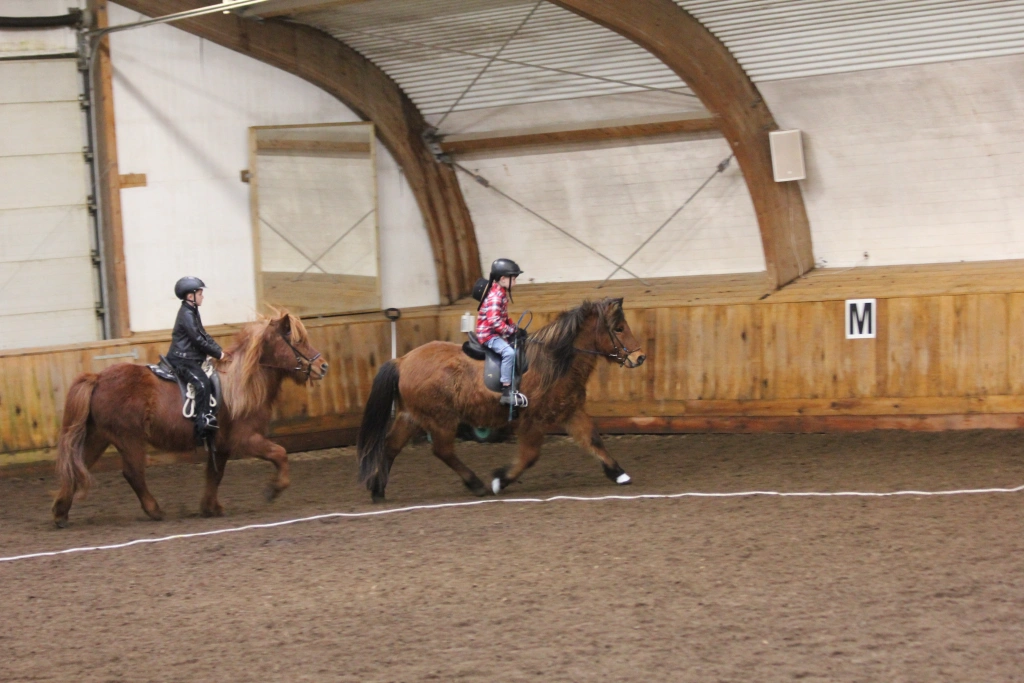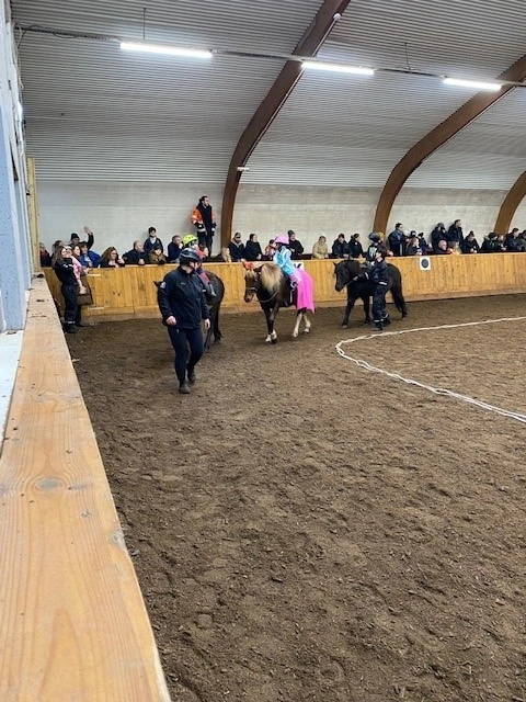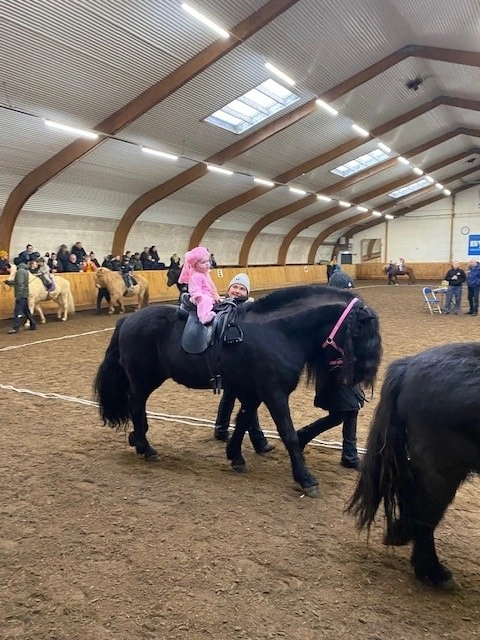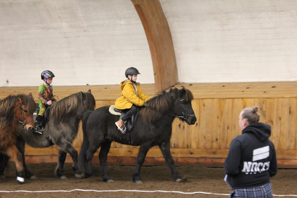 Hún Margrét Rós Jónsdóttir á Víkingi frá Ási var yngsti knapi leikanna aðeins 6 mánaða gömul. En það voru 14 teymdir pollar og 7 pollar sem riðu hring eftir hring á tölti eða brokki hvert öðru flottara.