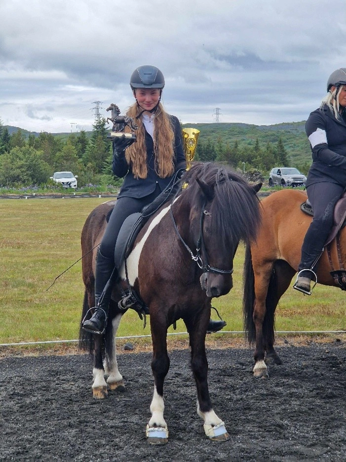 “Knapamerkin mótuðu mig eiginlega sem knapa. Þegar ég byrjaði í knapamerkjunum kunni ég voða lítið en þegar ég var búin með þau var ég orðin mjög klár í umhirðu og þjálfun á hestinum mínum. Knapamerki kenndi mér í raun öll þau grunnatriði sem ég veit í dag og eru svo mikilvæg að kunna til þess að ná sem bestum árangri í þjálfun og keppni. Hvert stig styrkti mig sem knapa hvað varðar ásetu, æfingar og hæfni til að ná betri tökum á hestinum mínum. Mér fannst líka svo skemmtilegt að fá að læra um Íslenska hestinn og gaf það manni meira áhuga og metnað til að ná árangri með sinn eigin hest. Ég sé alls ekki eftir því að taka knapamerkin af því að ég lærði svo heilmikið sem fékk mig til þess að halda áfram og mæli ég eindregið með að fara í þau, fyrir alla!”