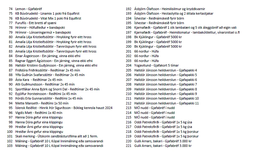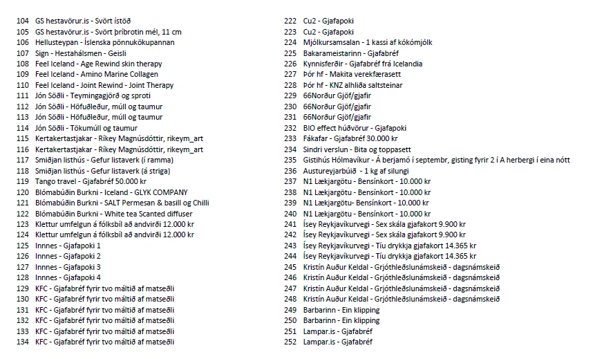 Skoðið vinningaskránna og sjáið alla þessa glæsilegu vinninga sem ýmis fyrirtæki og einstaklingar styrktu okkur með.