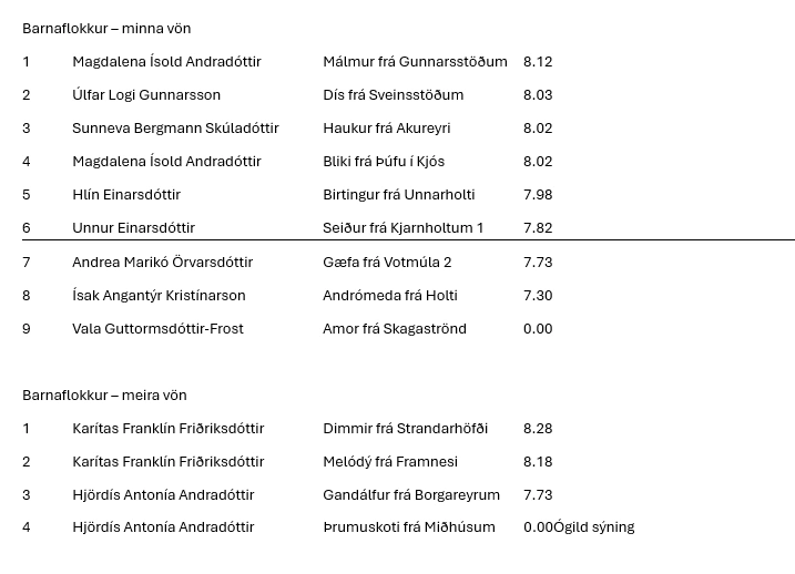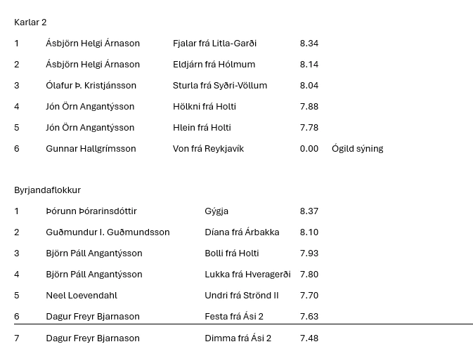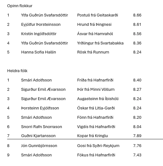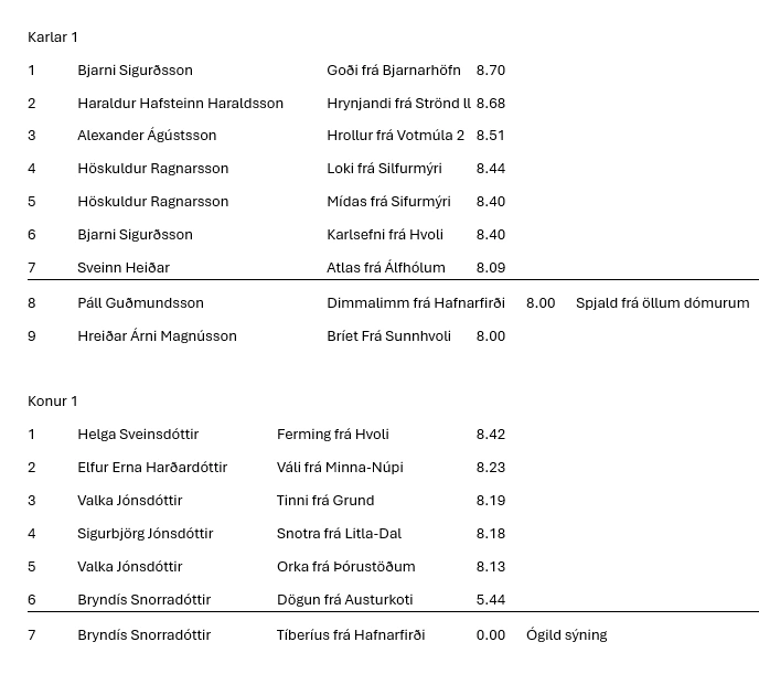 Þá er loksins komið að því að gefa út niðurstöður. Biðjumst við velvirðingar á töfunum. En það tók meiri tíma en áætlað var að yfirfara alla tölur frá dómara og innslátt til að tryggja réttleika einkunna. Svo óheppilega vildi til að það slæddust örfáar innsláttarvillur í fyrstu flokkana sem varð til þess að lifandi niðurstöður urðu ekki kórréttar. En mannleg mistök geta gerst og er búið að hafa samband við þá keppendur sem þessi mistök hafa áhrif á.