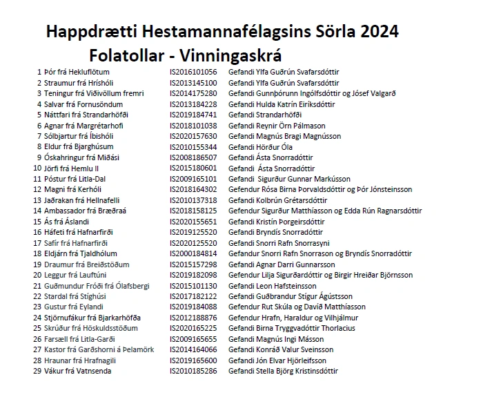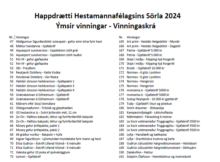Hér kemur vinningsskrá fyrir Skírdagshappdrætti Sörla árið 2024.