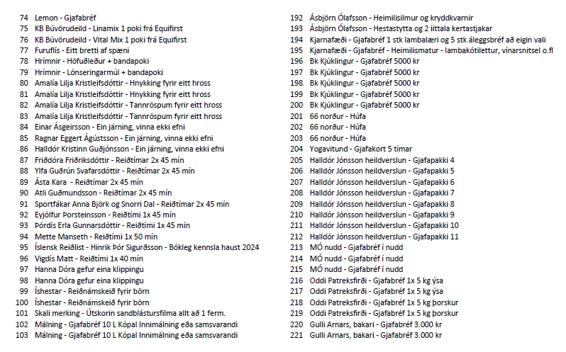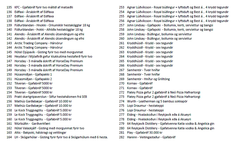 Vinningarnir eru stórglæsilegir að vanda, fullt af folatollum undir glæsilega hesta og ýmsir aðrir flottir vinningar sem allir vilja.