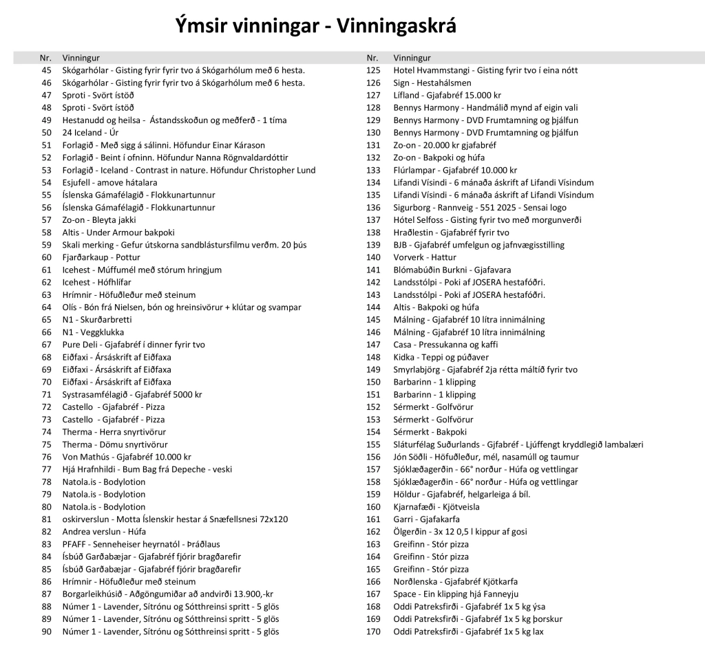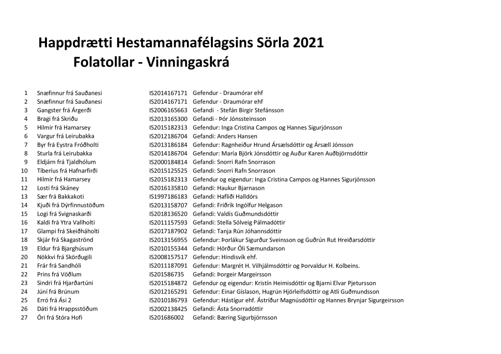 Skírdagshappdrætti Sörla 2021 - Vinningaská