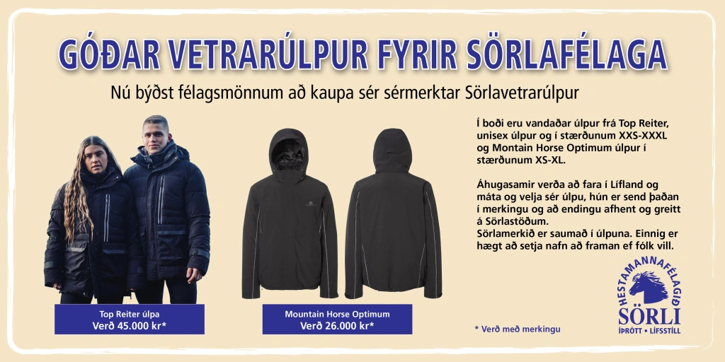 Áhugasamir verða að fara í Lífland og máta og velja sér úlpu. Hún er send þaðan í merkingu og að endingu afhend þegar þú greiðir fyrir hana á Sörlastöðum.