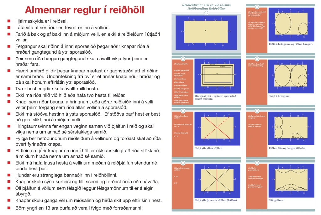 Ef reiðkennarar eru að kenna í höllinni og einhverjir aðrir eru eða koma í höllina þá verður kennari að fara í stúku og kenna þaðan.